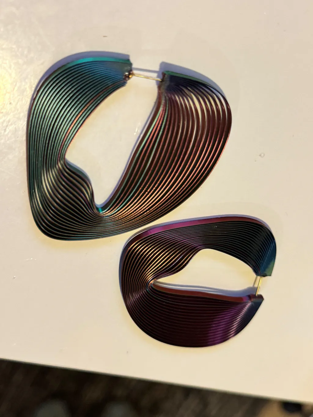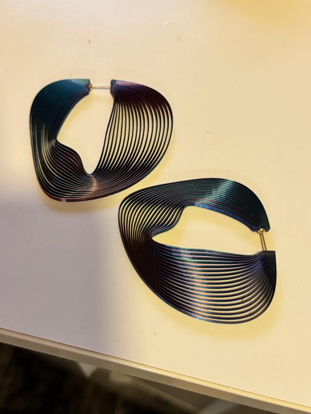les créoles linéaires inspirées par l'art optique de Vasarely, le design unique légères et ultra confortable